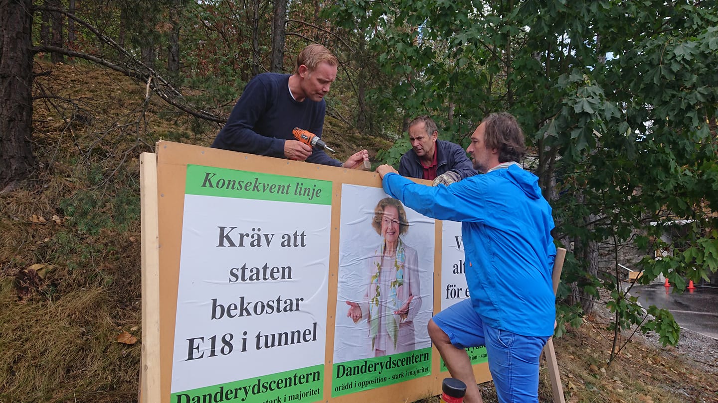 Två gäng med glada Danderydscenterpartister gav sig ut för att sprida Danderydscenterns budskap i affischform runt om i kommunen.